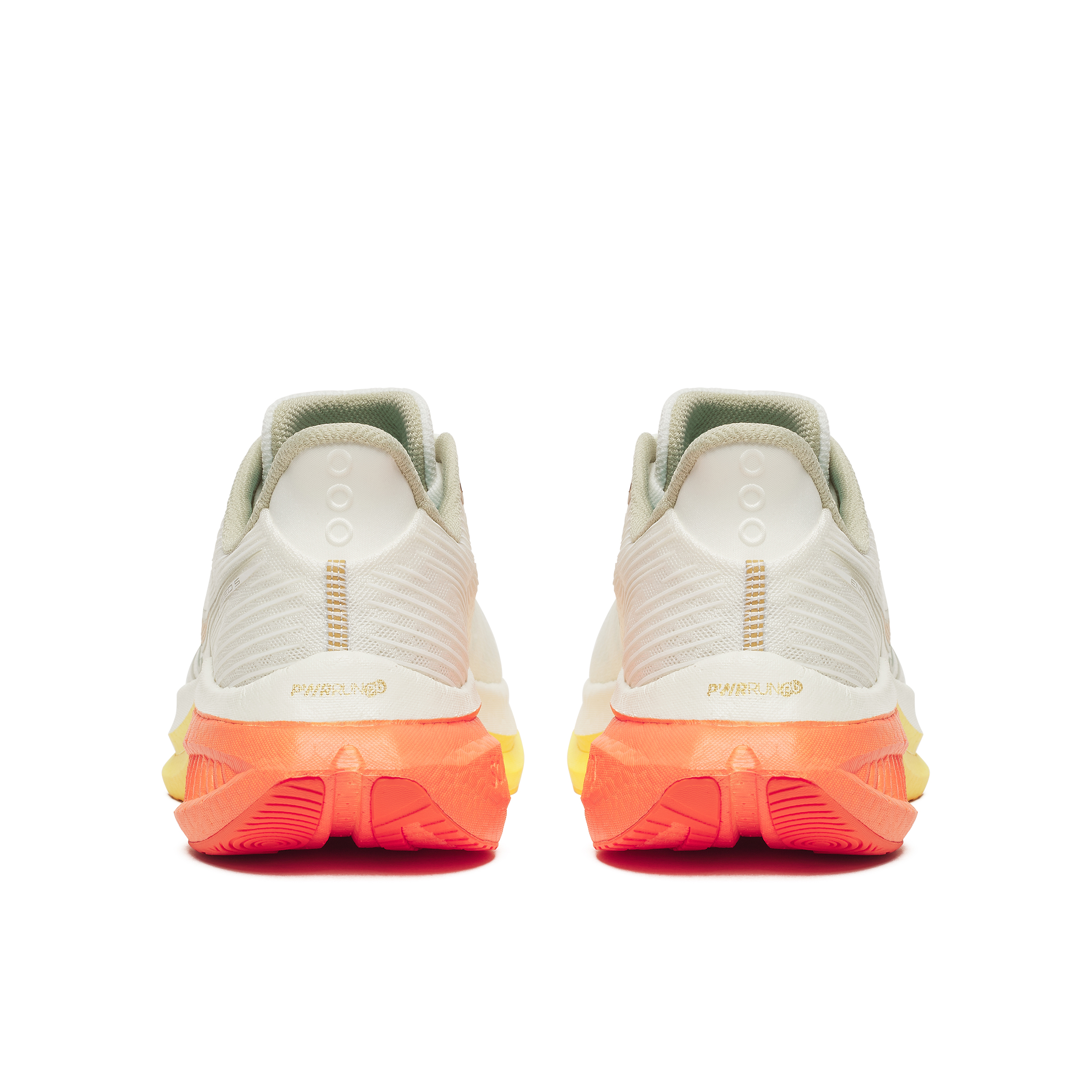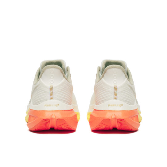 Energy efficient PWRRUN PB foam bounces back with every step combined with a winged nylon plate that provides torsional rigidity while maintaining flexibility in the forefoot, making for a
