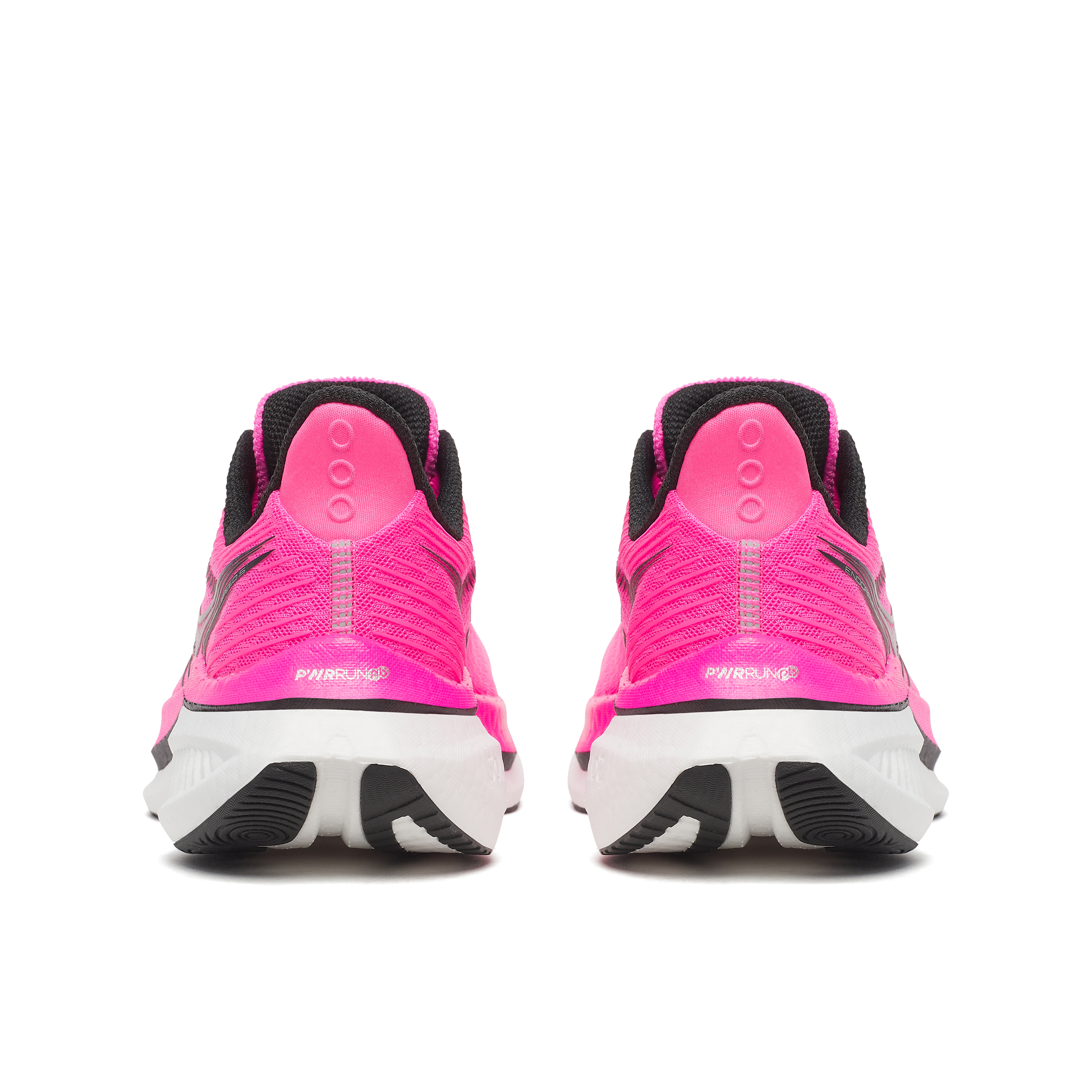 Energy efficient PWRRUN PB foam bounces back with every step combined with a winged nylon plate that provides torsional rigidity while maintaining flexibility in the forefoot, making for a